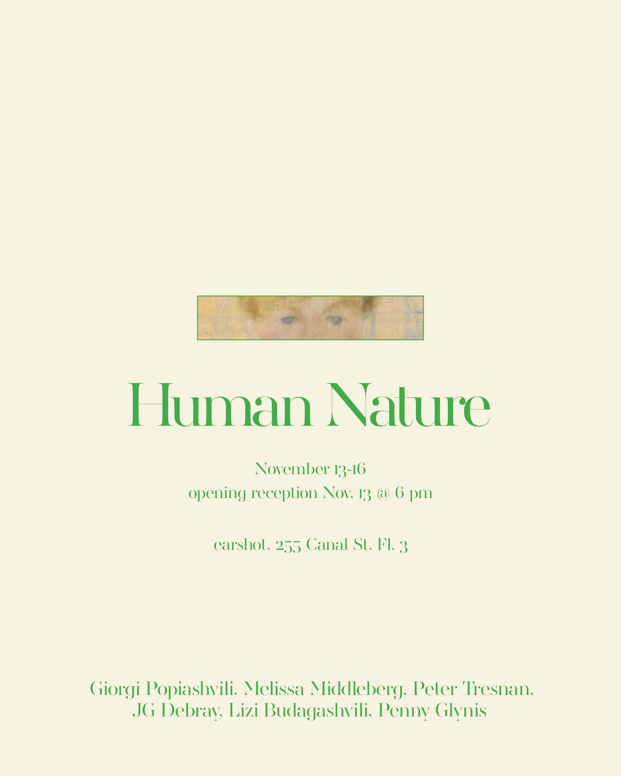Additionally, I am so blessed to be part of “Human Nature” organized by Earshot! This short exhibition will be open November 14-16, but a very special opening reception is happening on Thursday, November 13th - please join me! You can RSVP for the reception here, and the show’s info is below. Thanks to my friend and studio mate JG Debray for inviting me to show with these amazing people!