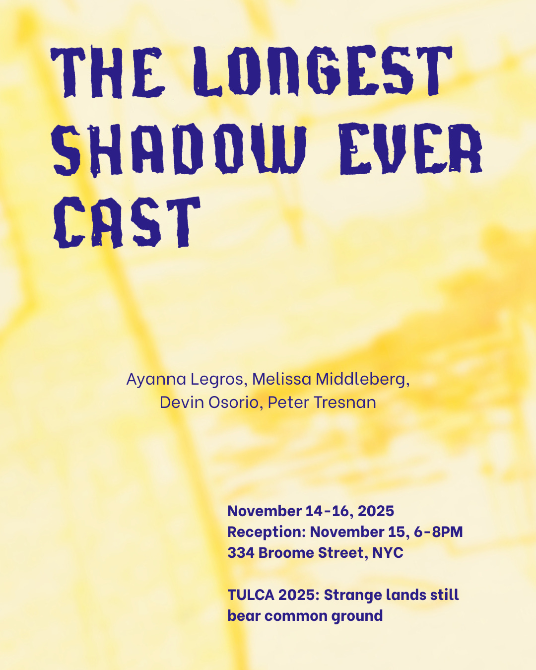 Saturday 11/15 6-8PM at 334 Broome, help us receive The Longest Shadow Ever Cast.